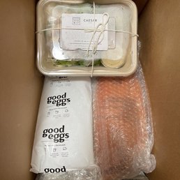 I ordered a dozen organic pasture-raised eggs ($5) and frozen wild alaskan salmon ($22) from too good to go. The eggs are marketed as "vibrant orange yolk" and thwy are clearly yellow in the picture. Overall, not a bad deal considering how expensive eggs are right now, but definitely not as advertised which was disappointing.